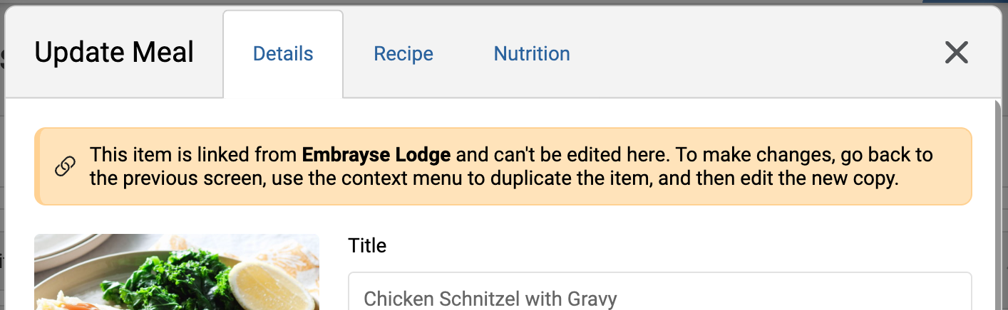 - The meal's placement on menus (the duplicate isn't automatically added anywhere)
