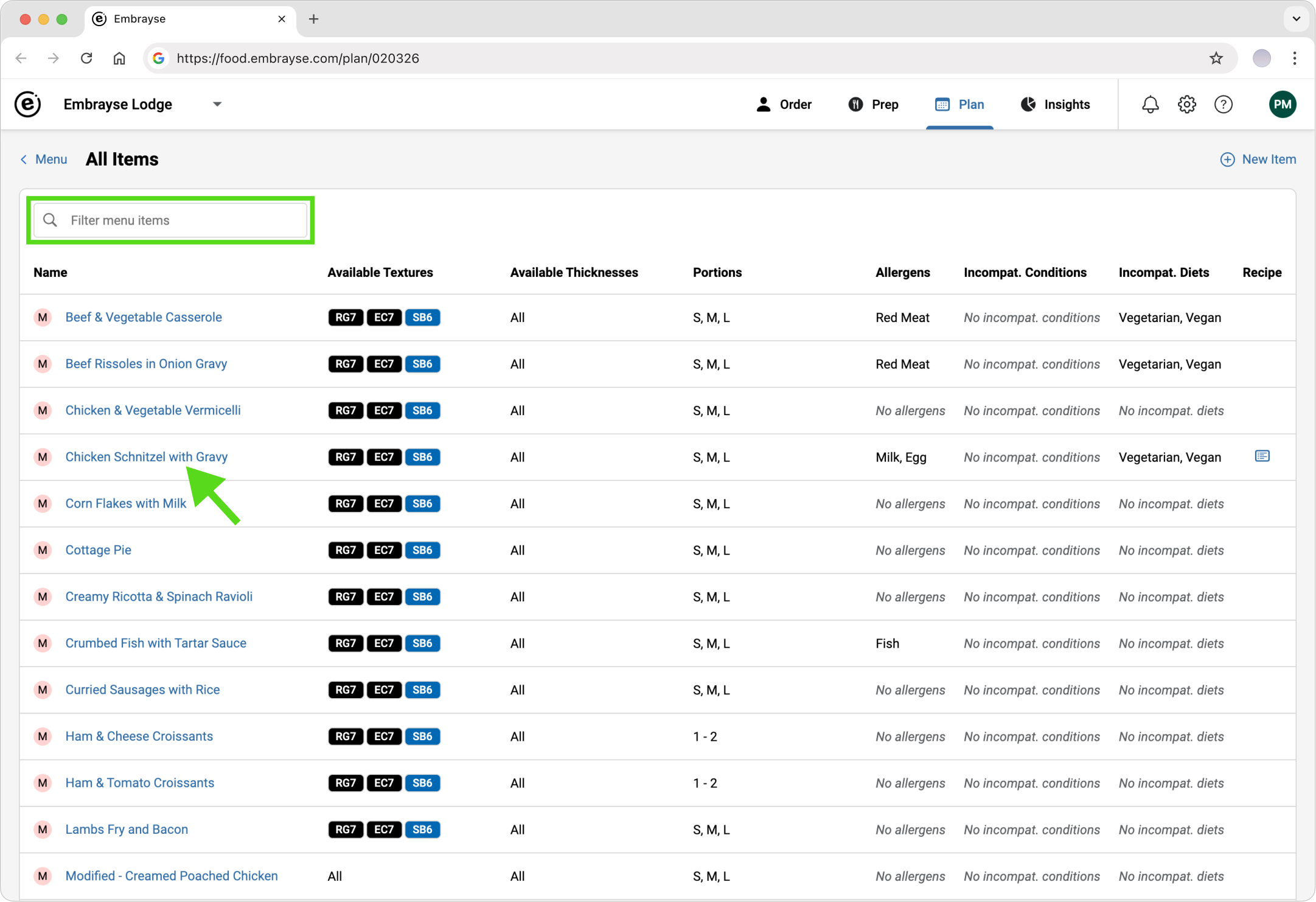 For example, if chicken schnitzel cannot be safely pureed or liquidised, untick those options so residents requiring those textures won't see it as an option.