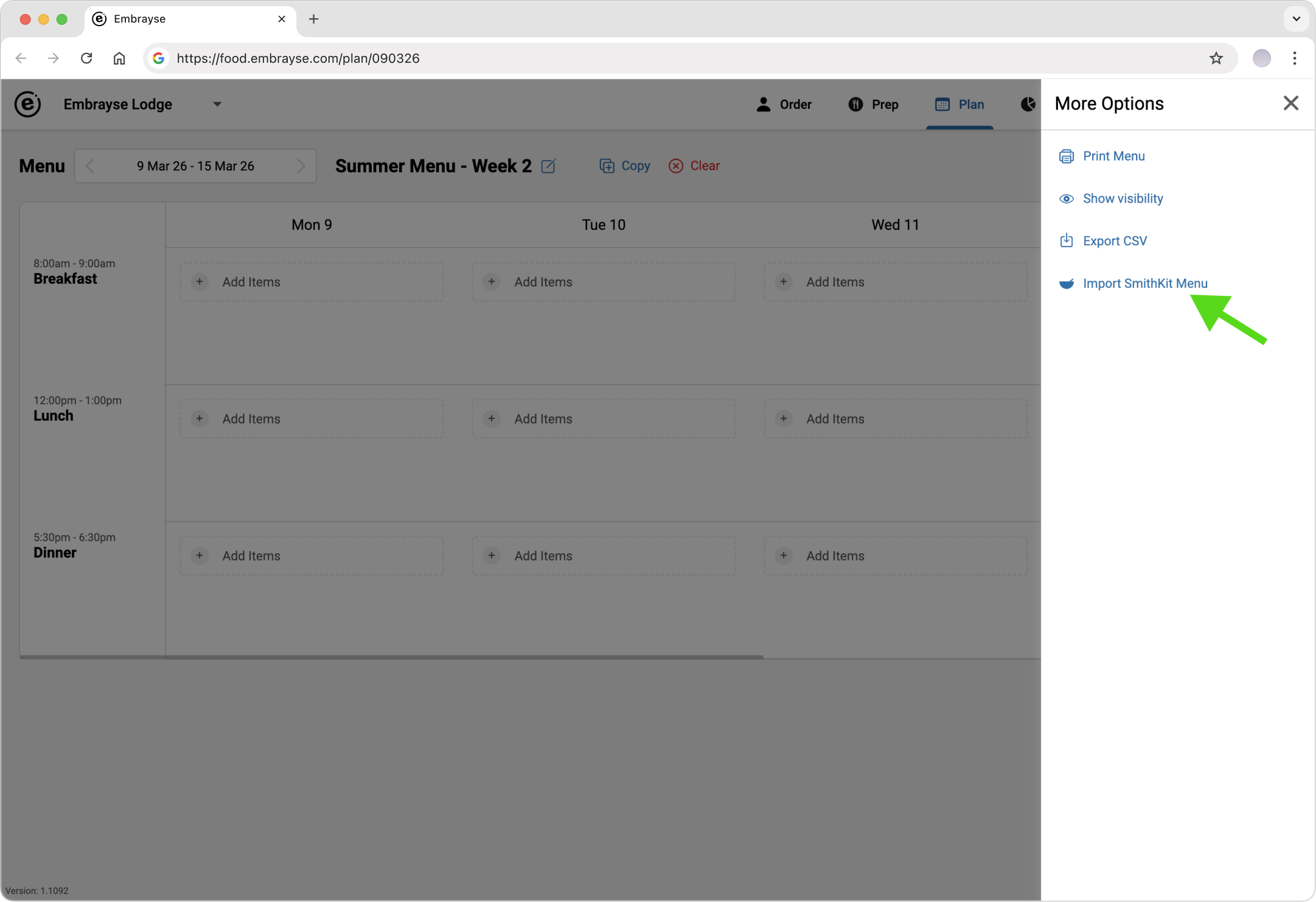 SmithKit is a menu management and recipe costing platform. If your organisation uses SmithKit, you can import menus directly into Embrayse rather than manually re-creating them.