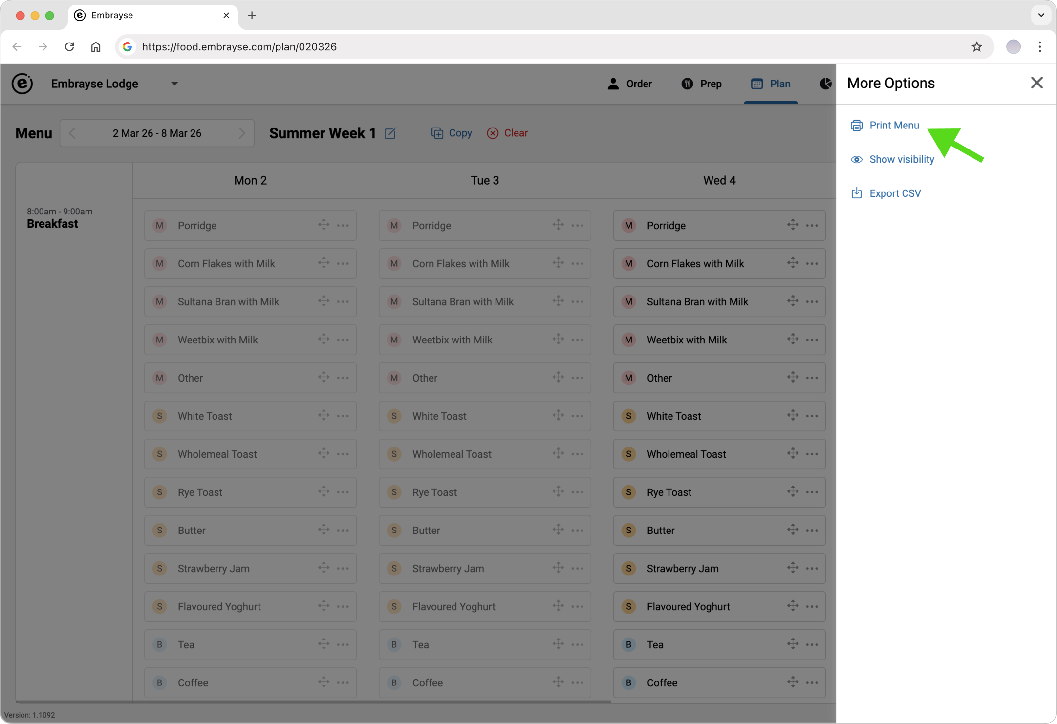 - The file downloads automatically (format: `Menu - [Date].csv`)