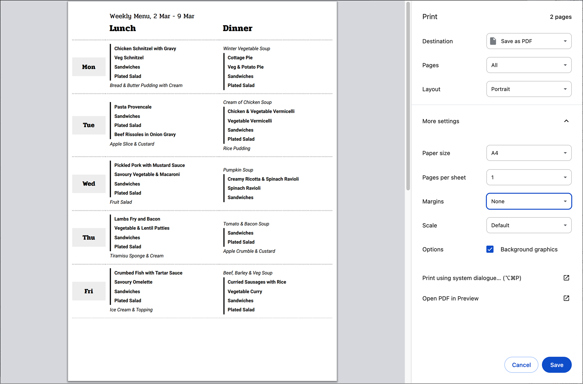 How to Print a Menu